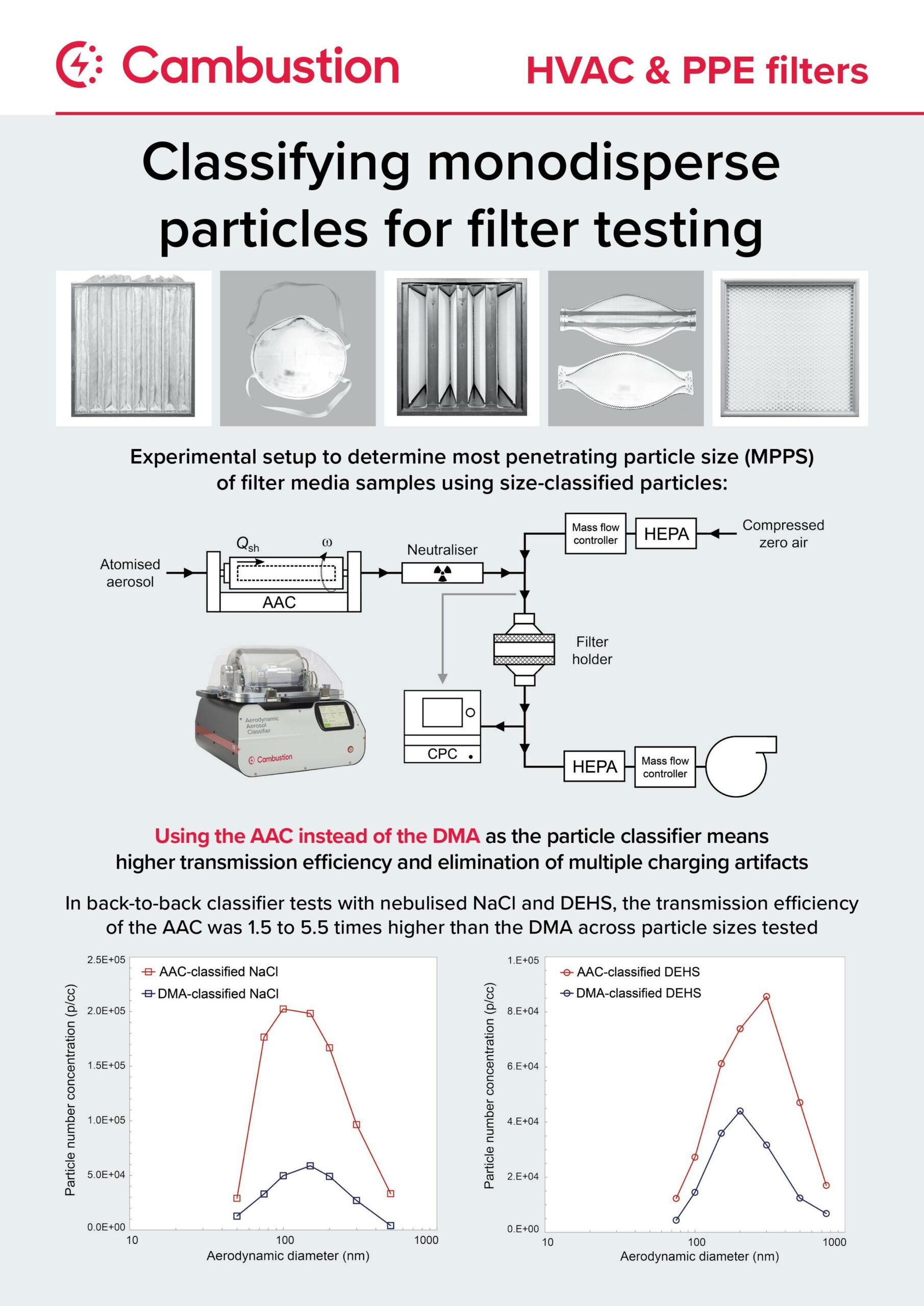 Voici un bel exemple de l’utilisation d’un classificateur en diamètre aérodynamique AAC Cambustion pour des études sur la filtration, présentée par Dr Simon Payne lors de l’American Filtration & Separations Society‘s Filtcon 2024 à Houston.